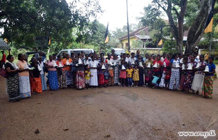 මෙම පරිත්යාග වැඩසටහන යටතේ සිවිල් වැසියන් 61 දෙනෙකුට බුද්ධ ප්රතිමා සහ බෝධි පූජා පොත් මෙන්ම ආබාධිත සිවිල් වැසියන් තිදෙනෙකුට රෝද පුටු ද පරිත්යාග කෙරිණි. පසුව, එම ආබාධිත සිවිල් වැසියන්ගෙන් එක් අයෙකුට රු. 10,000.00 ක වටිනාකමකින් යුත් අත්යවශ්ය ද්රව්ය සහ වියළි ආහාර සලාක මෙන්ම තවත් ආබාධිත සිවිල් වැසියෙකුට වායු මෙට්ටයක් ද ප්රදානය කරන ලදී.