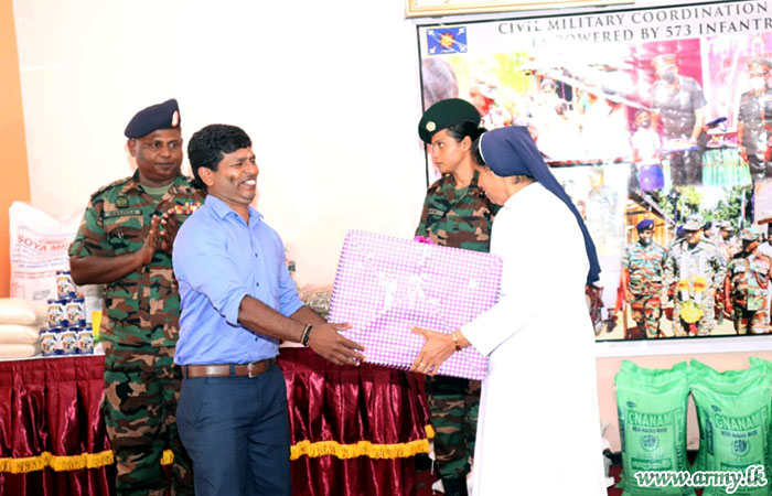 ආරක්ෂක සේනා මූලස්ථානය - මුලතිව් යටතේ ස්ථාපිත 57 වන පාබල සේනාංකයේ භටපිරිස් සම්බන්ධීකරණයෙන් මාන්කුලම් යහපත් එඬේරාගේ කන්යාරාමයේ නේවාසිකව සිටින ළමුන් 40 දෙනෙකු සඳහා වියළි ආහාර සලාක ඇසුරුම් බෙදා දීමේ සමාජ වැඩසටහනක් පසුගිය බදාදා (08) දින ක්රියාත්මක කරනු ලැබීය. එම අවස්ථාව සඳහා ප්රධාන ආරාධිත අමුත්තා ලෙස 57 වන පාබල සේනාංකයේ සේනාංකාධිපති මේජර් ජෙනරල් චන්දිමාල් පීරිස් සහභාගී විය.