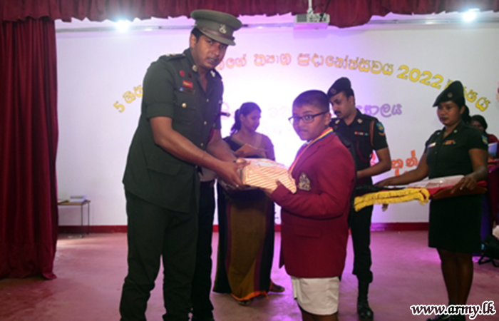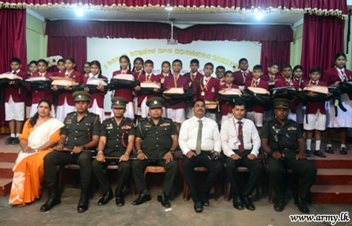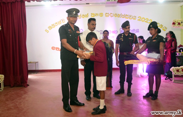 ආරක්ෂක සේනා මූලස්ථානය - නැගෙනහිර යටතේ ස්ථාපිත 22 වන පාබල සේනාංක මූලස්ථානයේ 221 වන පාබල බලසේනාවේ භටපිරිස්වල සම්බන්ධීකරණයෙන් එංගලන්තයේ ‘චෙස්නට් පදනමේ’ (Chesnut Foundation ) මූල්යමය අනුග්රාහකත්වය මත ත්රිකුණාමලය සිංහල මහා විද්යාලයේ 5 වසර ශිෂ්යත්ව විභාගයෙන් දක්ෂතා දැක්වූ සිසු සිසුවියන් 25 දෙනෙකු සඳහා පාසල් උපකරණ බෙදාදීමේ සමාජ සත්කාරක වැඩසටහනක් පසුගිය සඳුදා (27) දින පවත්වනු ලැබීය.