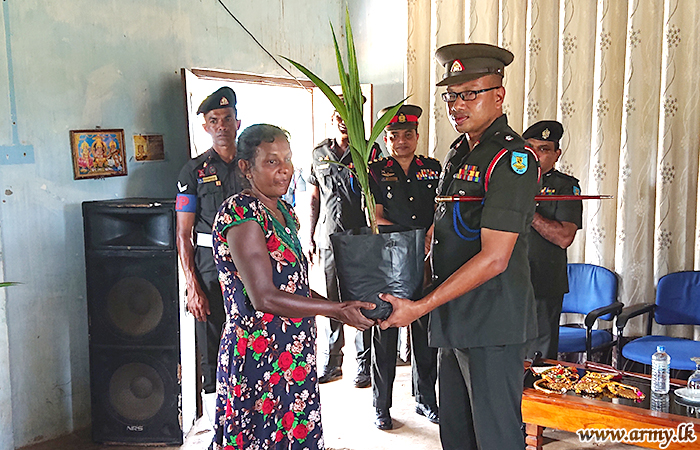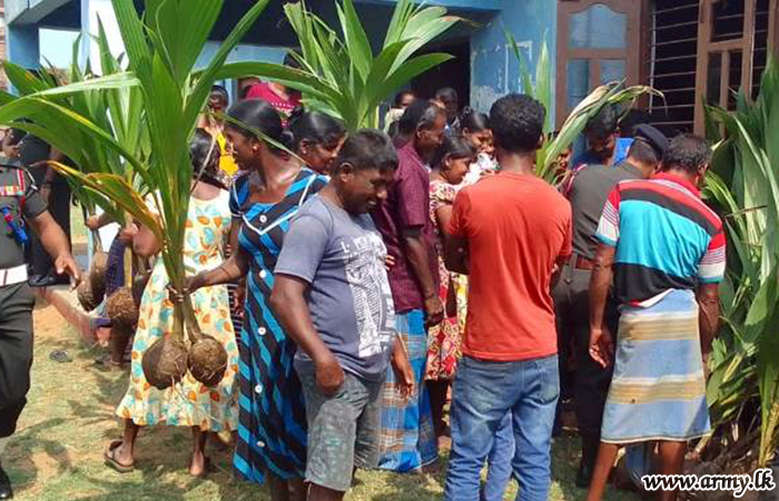 යුද්ධ හමුදා භටපිරිස් විසින් කුඹුරුපිඩ්ඩි ප්රදේශයේ පවුල් සඳහා පොල් පැළ බෙදාදෙයි