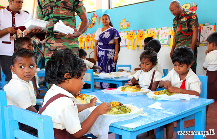 52 වන පාබල සේනාංකයේ සේනාංකාධිපතිතුමන්ගේ මූලිකත්වයෙන් පෙර පාසල් ළමුන් වෙත දිවා භෝජන සංග්රහයක්