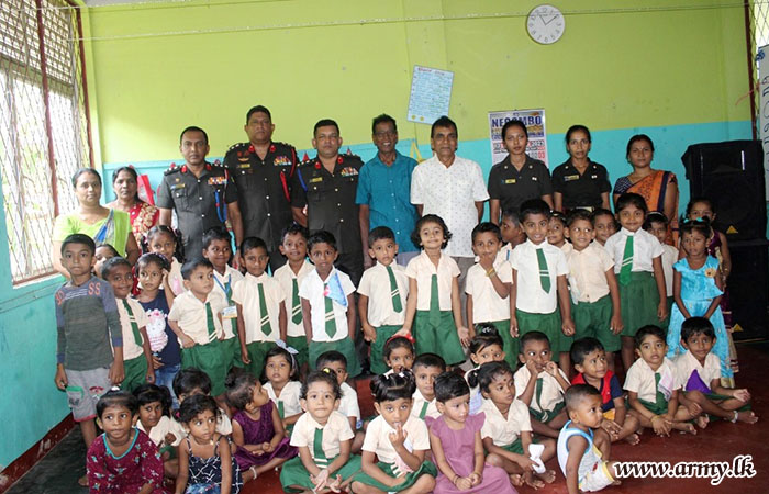 24 පාබල සේනාංකයේ භටපිරිස් ‘විෂන් හෝප්’ පෙර පාසලේ ළමුන් 45 දෙනෙකු සඳහා ත්යාග පාර්සල් පරිත්යාග කර දිවා භෝජන සංග්රහයක් පිරිනමන ලද අතර, 241 සහ 242 පාබල බලසේනාවන් විසින් අක්කරෛයිපත්තුව, මනල්චේන, තුලාසි සහ සංගමන්කන්ද ප්රදේශයේ පාසල් ළමුන් 196 දෙනෙකු සඳහා පාසල් පොත් ප්රදානය කිරීමේ වැඩසටහන් සංවිධානය කරන ලදී.
