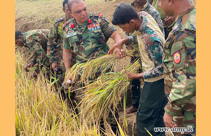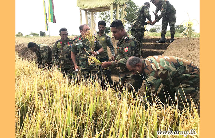 මීට මාස කිහිපයකට පෙර භට පිරිස් විසින් මෙම කුඹුරු යායේ වී වපුරන ලද අතර, මේජර් ජෙනරල් ඒ.එච්.එල්.ජි. අමරපාල ආර්ඩබ්ලිව්පී ආර්එස්පී එන්ඩීසී පීඑස්සී ආගමික වතාවත්වලින් අනතුරුව, වී අස්වනු නෙළීම ආරම්භ කෙරිණ.