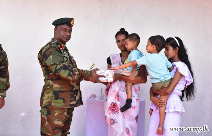 ශ්රී ලංකා යුද්ධ හමුදාවේ 75 වන සංවත්සරයට සමගාමීව වැලිඔය මොණරවැව ප්රදේශයේ අභිනවයෙන් ඉඳිකරන ලද නිවසක් ප්රථිලාභින් වෙත 2024 අගෝස්තු මස 05 දින පවරා දෙන ලදී.