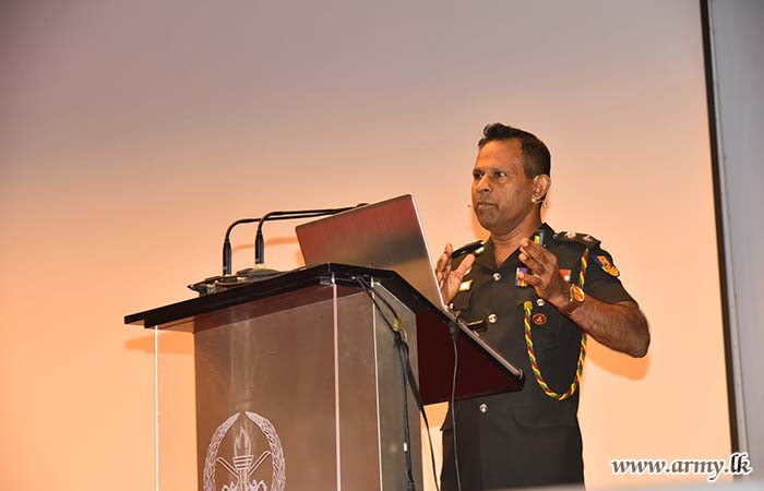 ලුතිනන් කර්නල් සුජිත් චාමින්ද එදිරිසිංහ විසින් මෙම දේශණය පවත්වන ලද අතර, එතුමන්ගේ පර්යේෂණයන් ගෙන් සොයාගත් කරුණු පදනම් කරගනිමින් එතුමන් එල්ටීටීඊ ත්රස්තවාදයට එරෙහිව ශ්රී ලංකා හමුදාවේ 30 වසරක සටනේ ප්රධාන සන්ධිස්ථානයන් සඳහන් කළේය. මෙම දේශනය මගින් යුද්ධ හමුදාවේ උපාය මාර්ගික මෙහෙයුම් සහ ගැටුම් සමයේ දායකත්වයන් පිළිබඳව වටිනා අවබෝධයක් එතුමන් ලබා දෙන ලදී.
