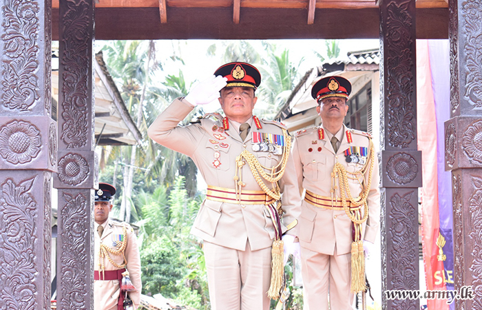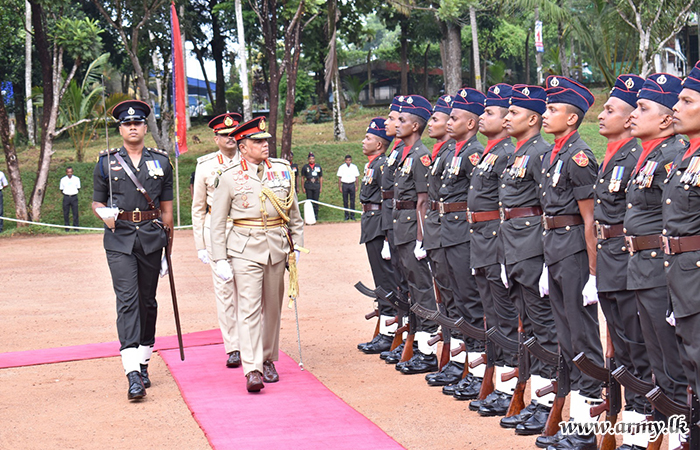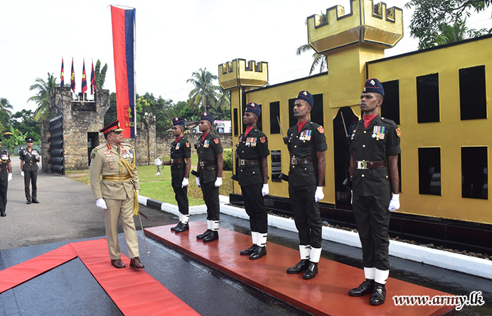 ප්රධාන දොරටුව වෙත සපැමිණි බලකාධිපතිතුමන් ශ්රී ලංකා යුද්ධ හමුදා ඉංජිනේරු සේනාංකයේ සේනාංකාධිපති මේජර් ජෙනරල් ටී.සී පීරිස් ආර්එස්පී යූඑස්පී විසින් එතුමන් උණුසුම් අයුරින් පිළිගනු ලැබීය අනතුරුව, එම සේනාංකයේ භට පිරිස් විසින් එතුමන් වෙත හමුදා සම්ප්රදායානුකූල කඳවුරු මුරයේ ගෞරවාචාරය පුද කිරීමෙන් පසුව, සම්මාන මුරයක්ද පුද කෙළ්ය.