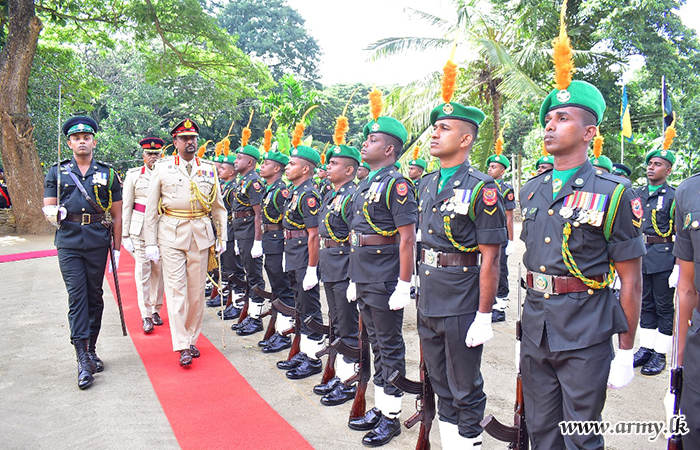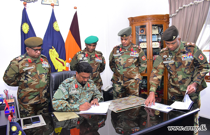එතුමන් වෙත හමුදා සම්ප්රදායානුකූල කඳවුරු මුරයේ සහ සම්මාන මුරයේ ගෞරවාචාරය පුදකිරීමෙන් අනතුරුව, සිය කාර්යාලයේදී සේනාංකාධිපතිතුමන් නිලවශයෙන් තම ධූරය භාරදීමේ නිල ලේඛනයට අත්සන් තැබීය.