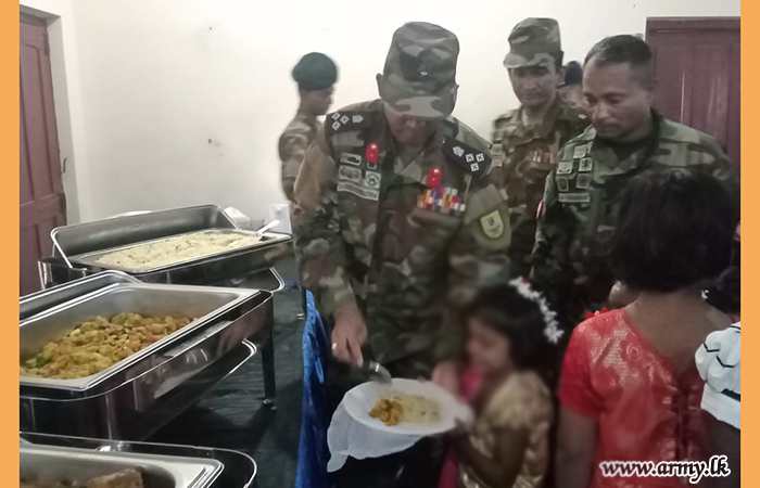 241 පාබල බලසේනාවේ බලසේනාධිපති බ්රිගේඩියර් එල්.එස්.ඩී.එන්. පතිරත්න ආර්එස්පී යූඑස්පී ගේ මඟපෙන්වීම මත ක්රියාත්මක කෙරුණු මෙම වැඩසටහනේදී එම ළමා නිවාසයේ නේවාසික ළමුන් 34 දෙනෙකු සහ කාර්ය මණ්ඩලය වෙනුවෙන් දිවා භෝජන සංග්රහයක් ද පිරිනැමිණි.