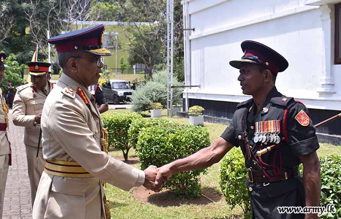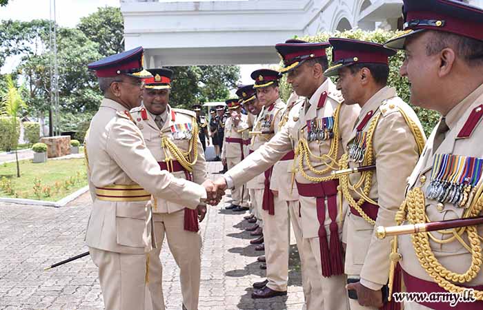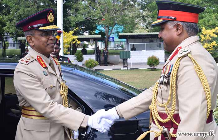 රෙජිමේන්තු මූලස්ථානය වෙත සපැමිණි බලකාධිපතිතුමන් වෙත හමුදා සම්ප්රදායානුකූල කඳවුරු මුරයේ සහ රෙජිමේන්තු සම්මාන මුරයේ ගෞරවාචාරයන් පුදකිරීමෙන් අනතුරුව එතුමන් සිය කාර්යාලයේදී ධුරයෙන් නික්ම යාම සනිටුහන් කරමින් සංකේතාත්මක නිල ලේඛනයකට අත්සන් තැබීය.