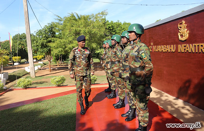 12 (ස්වෙච්ඡා) බලඇණිය විජයබාහු පාබල රෙජිමේන්තුවේ ප්රධාන දොරටුව අභියසදී 56 පාබල සේනාංකයේ සේනාංකාධිපතිතුමන් වෙත හමුදා සම්ප්රදායානුකූල කඳවුරු මුරයේ ගෞවරවාචාරය පුදකිරීමෙන් අනතුරුව එම ඒකකයේ අණදෙන නිලධාරී, නිලධාරීන් සහ සියලුම භටපිරිස් විසින් එතුමන් උණුසුම් අයුරින් පිළිගනු ලැබීය. 562 පාබල බලසේනාව වෙත යාමට ප්රථම එතුමන් භටපිරිස් ආමන්ත්රණය කළේය.