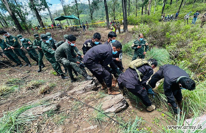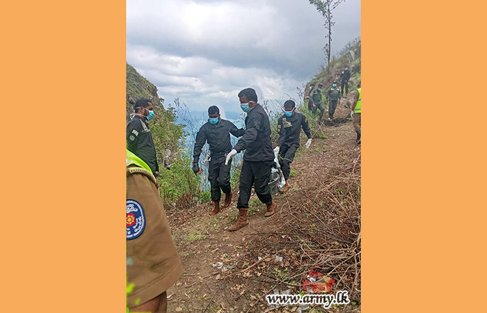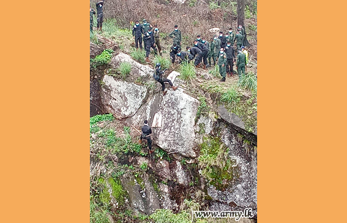 මියගිය තරුණයාගේ සිරුර සොයා ගැනීමට සහ එම සිරුර රුගෙන ඒම සඳහා කමාන්ඩෝ රෙජිමේන්තුවේ භටපිරිස් මහත් පරිශ්රමයක් දරා පුංචි ලෝකාන්තය ප්රදේශයේ ප්රපාතය තරණය කර ඇත.