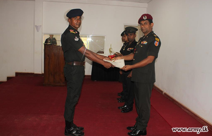 පාඨමාලා පුහුණු කාලය තුල දැක්වූ දක්ෂතා වෙනුවෙන් ශ්රී ලංකා කාලතුවක්කු හමුදාවේ නි/71076 කපිතන් එන්.ඒ.එස්.එස් නාපාගොඩ කුසලතා අනුපිළිවෙලින් පළමු ස්ථානය හිමිකර ගන්නා ලදී.