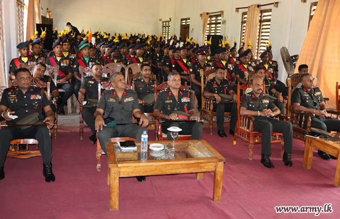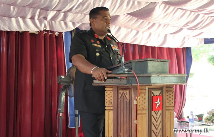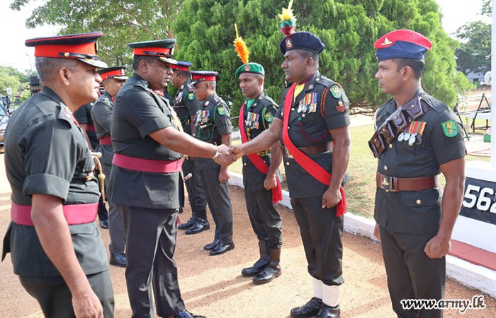 එම කඳවුරු පරිශ්රයන් වෙත සපැමිණි සේනාංකාධිපතිතුමන් වෙත භටපිරිස් විසින් හමුදා සම්ප්රදායානුකූල කඳවුරු මුරයේ ගෞරවාචාරයන් පුදකිරීමෙන් අනතුරුව බලසේනාධිපතිතුමන් ඇතුළු අණදෙන නිලධාරින් විසින් එතුමන් උණුසුම් අයුරින් පිළිගනු ලැබූහ.
