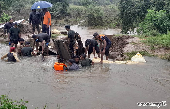 යුද්ධ හමුදා භටපිරිස්හි මූලිකත්වයෙන් කැඩීගිය වාහල්කඩ වැව් බැම්ම ප්රතිසංස්කරණය කරයි