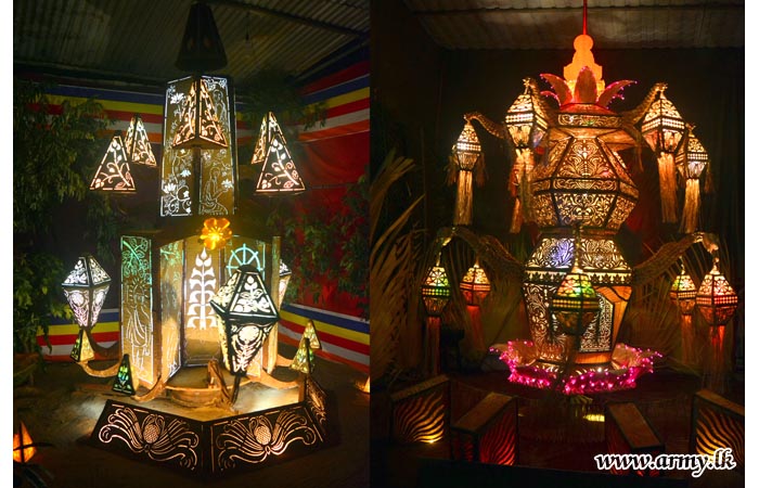 යුද්ධ හමුදාවේ දායකත්වයෙන් දිවයින පුරා ඉදිකල වෙසක් කලාපයන් දහස් සංඛ්යාවක ජනතාවගේ ආකර්ශණය දිනාගනී