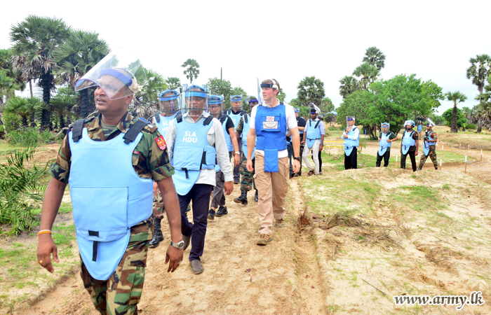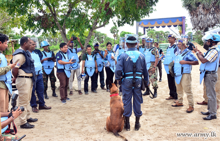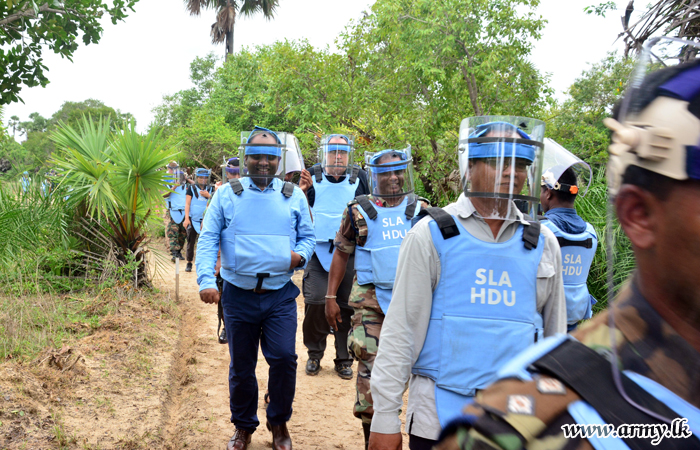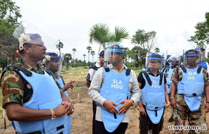මුහමාලේ බිම් බෝම්බ ඉවත් කිරීමේ ක්ෂේත්රයේ සංචාරය කළ මෙම පිරිස, යුද්ධ හමුදාවේ සහ රාජ්ය නොවන බිම් බෝම්බ ඉවත් කරන්නන් විසින් පැය තුනකට ආසන්න කාලයක් ඉදිරිපත් කළ සජිවී නිදර්ශනයක් නැරඹීම තුලින් හා අන්තර් ක්රියාකාරිව සිදු කරනු ලබන ක්ෂේත්ර නිදර්ශනයක් මඟින් බිම් බෝම්බ ඉවත් කිරීමේ ක්රියාවලිය සම්බන්ධව ප්රයෝගික දැනුමක් ලබාගන්නා ලදි.