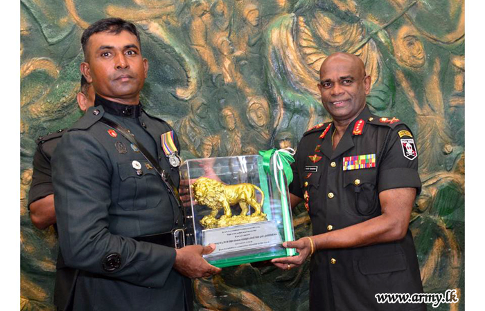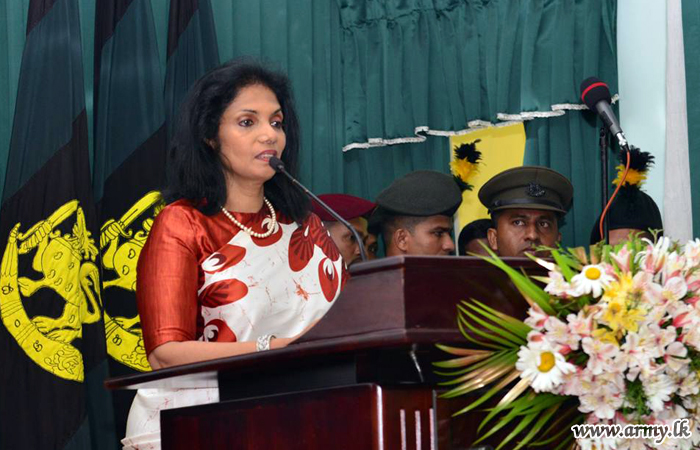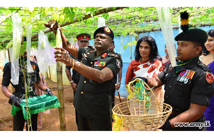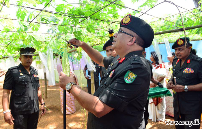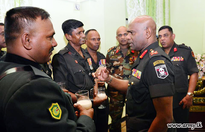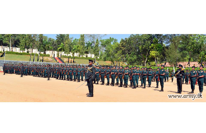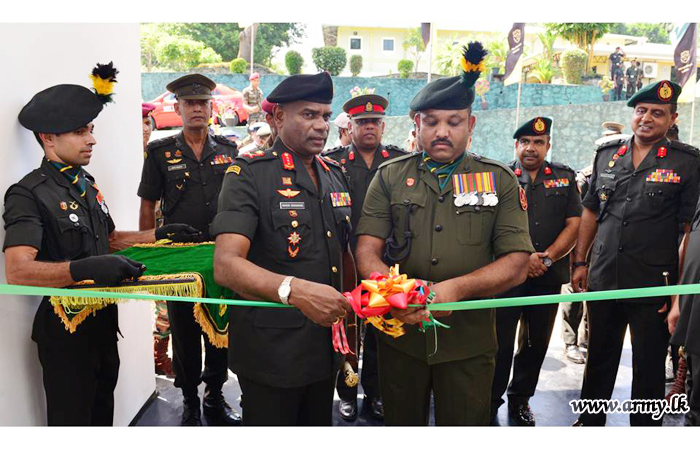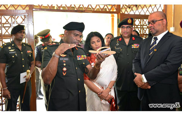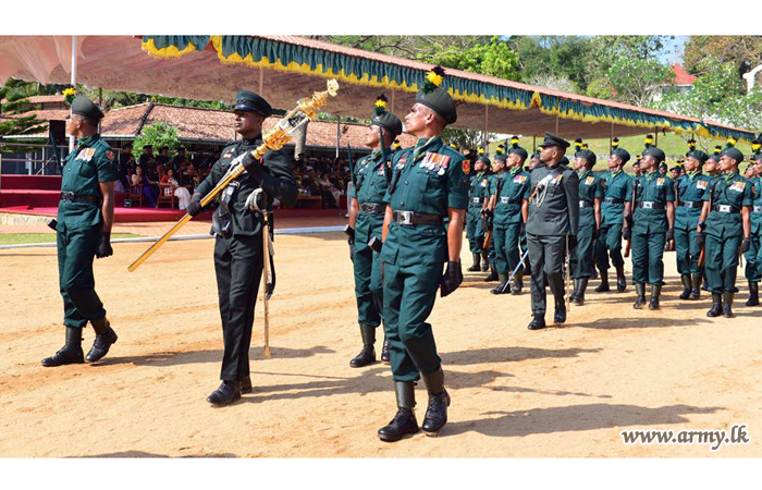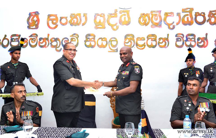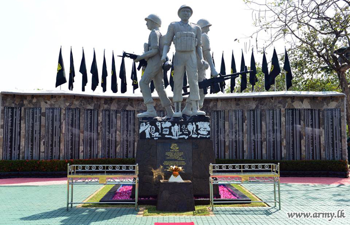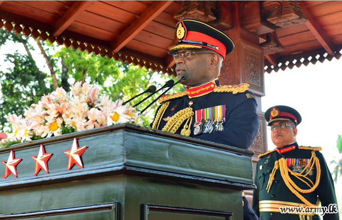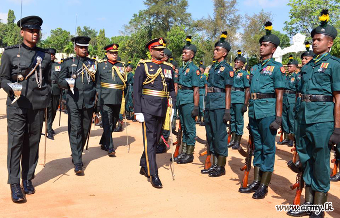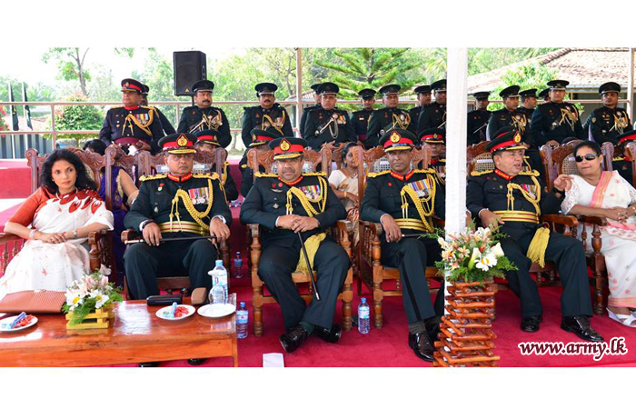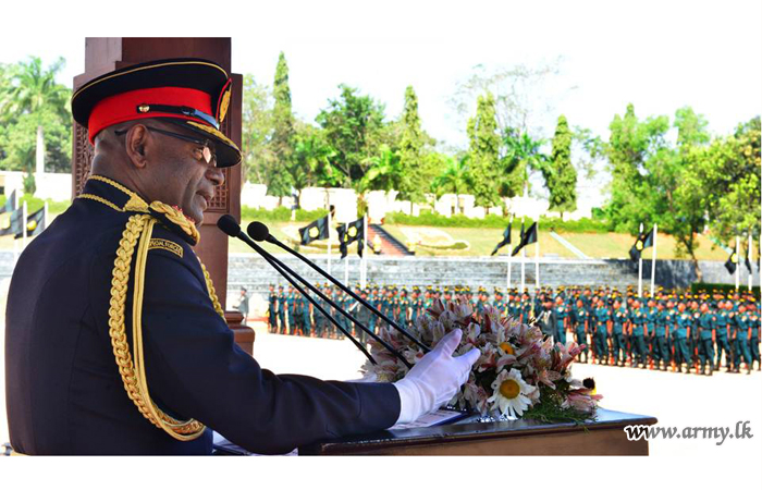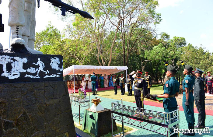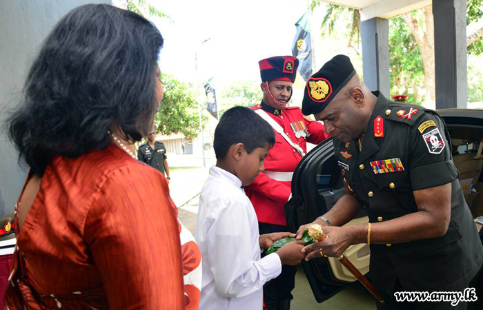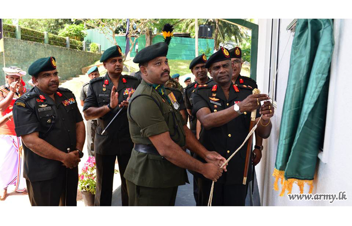 එහි සපැමිණී යුද්ධ හමුදාධිපතිතුමන් ශ්රී ලංකා සිංහ රෙජිමේන්තුවේ භට පිරිස් විසින් කදවුරු සම්මාන මුරයක් පිරිනැමු අතර රෙජිමේන්තු අධිපති මේජර් ජෙනරාල් කුමුදු පෙරේරා විසින් එතුමන් උණුසුම් අයුරින් පිළිගනු ලැබිය. අනතුරුව දීර්ඝ කාලීන අවශ්යතාවයක්ව පැවති නවතමයෙන් ඉදිකරන ලද රෙජිමේන්තු මූලස්ථානයට පිවිසේන ප්රධාන දොරටුව විවෘත කිරිම සඳහා සමරුඵලකය නිරාවණය කිරිම යුද්ධ හමුදාධිපතිතුමන් විසින් සිදු කෙරිණි.