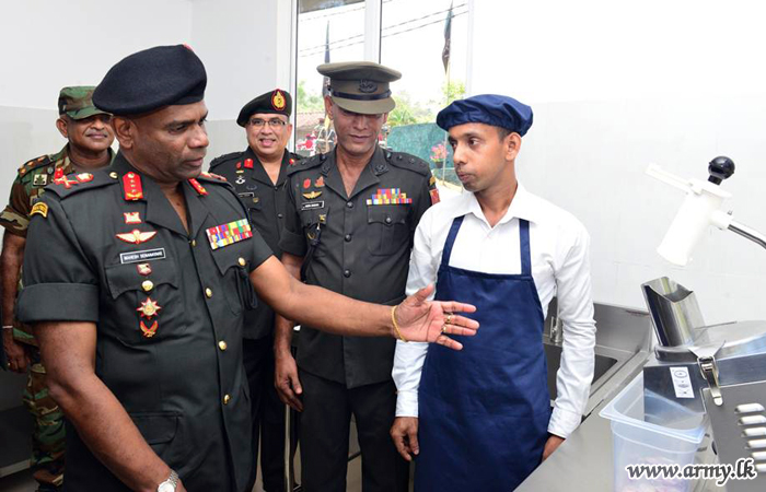 අනතුරුව ලද ආරාධනයෙන් යුද්ධ හමුදාධිපතිතුමන් ශ්රි ලංකා සිංහ රෙජිමේන්තුවේ යුද්ධ හමුදා සාමාජිකයින් ගේ දක්ෂතාවයන් නිරික්ෂණය කළ අතර එහිදි අත්කම් නිර්මාණ හා වෙනත් ව්යාපෘතීන් සඳහා දිරිය පියස නමින් නව නිෂ්පාදනයන් සඳහා ඉදිකර ඇති පුහුණු මධ්යාස්ථානය හා යුද්ධ හමුදා අරමුදලින් අළුත්වැඩියා කරන ලද මුළු තැන්ගෙය පරික්ෂා කරන ලදි.