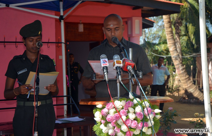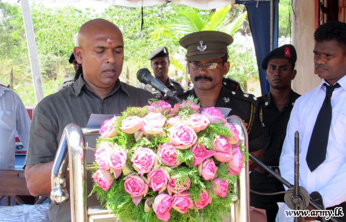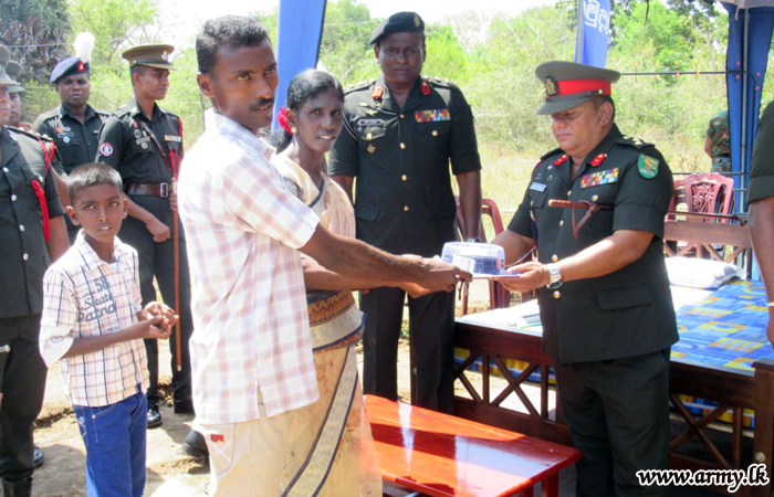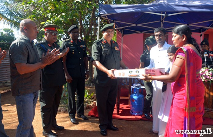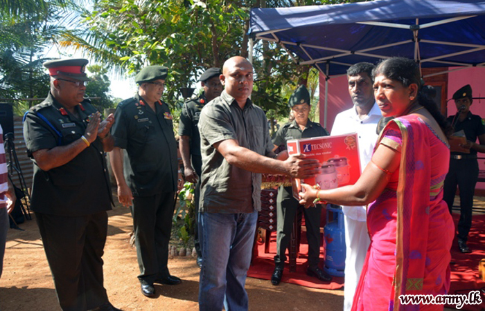 නවතමයෙන් ඉදිකරන ලද නිවාස දෙක ප්රතිලාභින් වෙත ප්රදානය කිරීමේ උත්සවය පසුගිය බදාදා (10) දින වන්නි ආරක්ෂක සේනා ආඥාපති මේජර් ජෙනරාල් කුමුදු පෙරේරා ගේ ප්රධානත්වයෙන් පැවැත්විණි.