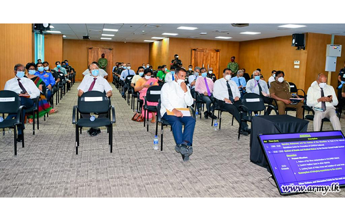 'කොවිඩ්-19 පැතිරීම වැළැක්වීමේ ජාතික ක්රියාන්විත මධ්යස්ථානයේ කාර්යසාධක බලකායේ තවත් විශේෂ සාකච්ඡාවක් එහි ප්රධානි, ආරක්ෂක මාණ්ඩලික ප්රධානි හා යුද්ධ හමුදාධිපති ලුතිනන් ජෙනරල් ශවේන්ද්ර සිල්වා සහ සෞඛ්ය සේවා අධ්යක්ෂ ජෙනරල් විශේෂඥ වෛද්ය අසේල ගුණවර්ධණ මහතාගේ ප්රධානත්වයෙන් අද (18) දින පස්වරුවේ පැවැත්විණි.
