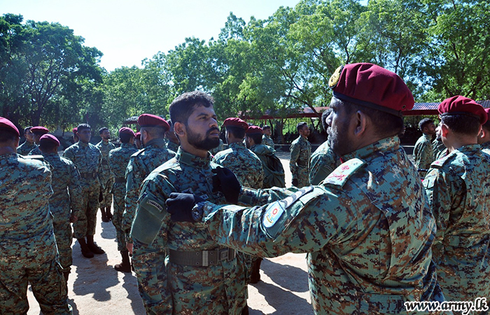 ඉන් අනතුරුව, මෙම අවස්ථාවට සහභාගී වූ ප්රධාන ආරාධිත අමුත්තා සහ අනෙකුත් ජ්යෙෂ්ඨ නිලධාරින් එක්ව විසිරයනු ලබන නව කමාන්ඩෝ සාමාජිකයන් වෙත කමාන්ඩෝ නිල ලාංඡන සහ අභිමානවත් මෙරූන් හිස්වැසුම් පළඳවන ලදී.