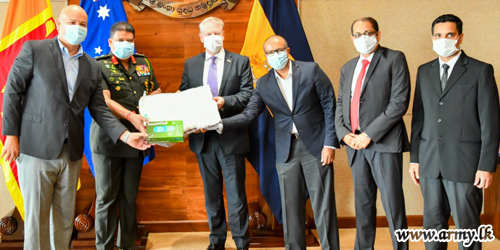 කොවිිඩ්-19 වෛරසය පැතිරීම වැළැක්වීමේ ජාතික මෙහෙයුම් මධ්යස්ථානය මෙන්ම ශ්රී ලංකා ත්රිවිධ හමුදා සාමාජිකයින් COVID-19 වසංගතයට එරෙහි ක්රියාත්මක කර ඇති වැඩපිළිවලට සහයෝගය දැක්වීමේ අරමුණින් යුතුව අද (29) දින යුද්ධ හමුදා මූලස්ථානය වෙත සපැමිණි ඕස්ට්රේලියානු ආරක්ෂක දෙපාර්තමේන්තුවේ මහ කොමසාරිස්වරයා ආරක්ෂක මාණ්ඩලික ප්රධානි, යුද්ධ හමුදාධිපති සහ කොවිිඩ්-19 වෛරසය පැතිරීම වැළැක්වීමේ ජාතික මෙහෙයුම් මධ්යස්ථාන ප්රධානි ලුතිනන් ජෙනරාල් ශවේන්ද්ර සිල්වා හමුවී සුහද පිළිසදරක නිරත වෙමින් හිස් ආවරණ සහ මුව ආවරණ තොගයක් යුද්ධ හමුදාධිපතිතුමන් වෙත පරිත්යාග කළේය.