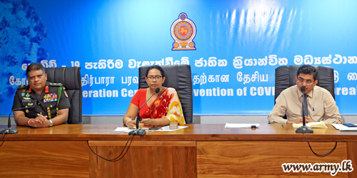 කොව්ඩ් - 19 පැතිරීම වැළැක්වීමේ ජාතික ක්රියාන්විත මධ්යස්ථානයේ දී අද (27) දින පස්වරුවේ සෞඛ්ය, දේශීය වෛද්ය හා පෝෂණ ඇමතිනී පවිත්රා වන්නිආරච්චි මහත්මියගේ ප්රධානත්වයෙන් පැවති මාධ්ය සාකච්ඡාවට කොව්ඩ් - 19 පැතිරීම වැළැක්වීමේ ජාතික ක්රියාන්විත මධ්යස්ථානයේ ප්රධානි, ආරක්ෂක මාණ්ඩලික ප්රධානී මෙන්ම යුද්ධ හමුදාධිපති ලුතිනන් ජෙනරාල් ශවේන්ද්ර සිල්වා, සෞඛ්ය සේවා අධ්යක්ෂ ජෙනරාල් විශේෂඥ වෛද්ය අනිල් ජාසිංහ මහතා සහ නියෝජ්ය පොලිස්පති නීතිඥ අජිත් රෝහණ මහතා ද සහභාගී වූහ.
