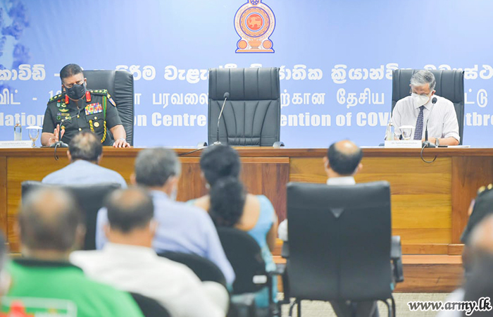 රාජගිරියේ පිහිටි කොවිඩ් - 19 පැතිරීම වැළැක්වීමේ ජාතික ක්රියාන්විත මධ්යස්ථානයේදී සිකුරාදා (04) දින ආරක්ෂක මාණ්ඩලික ප්රධානි සහ යුද්ධ හමුදාධිපති ජෙනරල් ශවේන්ද්ර සිල්වා ගේ ප්රධානත්වයෙන් පැවති සාකච්ඡාව සඳහා එම මධ්යස්ථානයේ කාර්ය සාධක බලකායේ සාමාජිකයින් සහ අනෙකුත්...