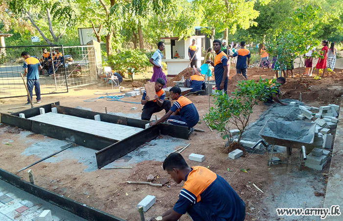 122 පාබල බලසේනාවේ භටපිරිස් අභයපුර සුරනිමල ප්රාථමික විද්යාලයේ රැස්වීම් පවත්වනු ලබන ගෙමිදුලෙහි ඉන්ටලොක් ගල් අතුරයි