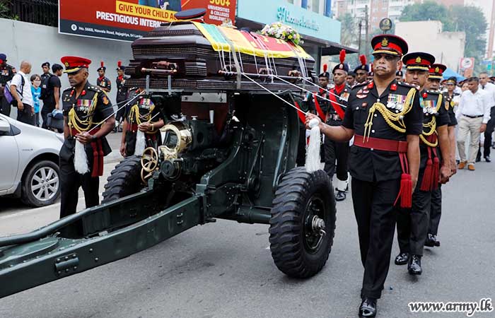 අභාවප්රාප්ත බ්රිගේඩියර් ඒ.ජී.එස්.එම්. පෙරේරා ආර්ඩබ්ලිව්පි ආර්එස්පී යූඑස්පී ගේ දේහය පිළිබඳ අවසන් කටයුතු යුද්ධ හමුදා ගෞරවාචාර මධ්යයේ සිදුකරයි