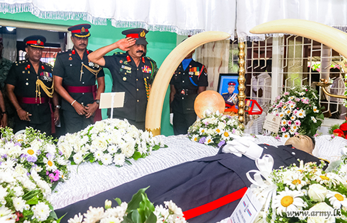යුද්ධ හමුදාධිපතිතුමන් ලුතිනන් කර්නල් ආර්.පී.කේ.එස්.එස් රණසිංහ ගේ දේහය වෙත අවසන් ගෞරව දක්වයි