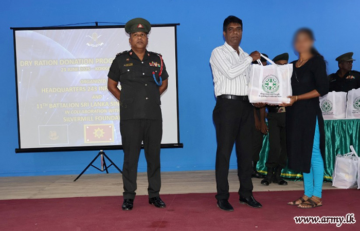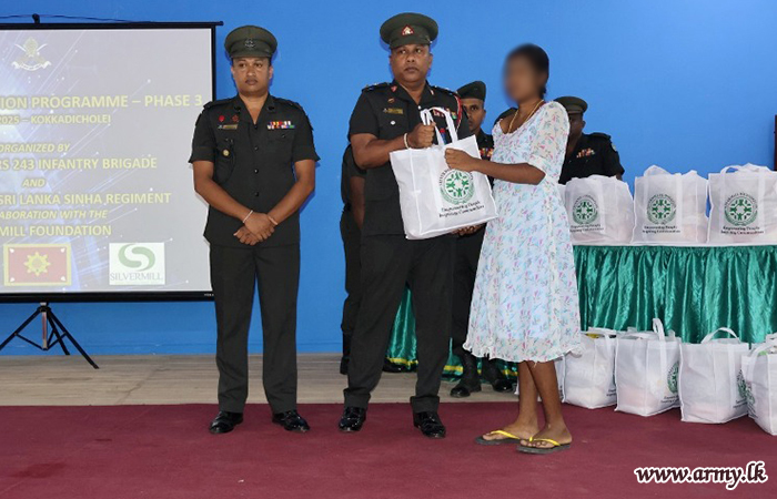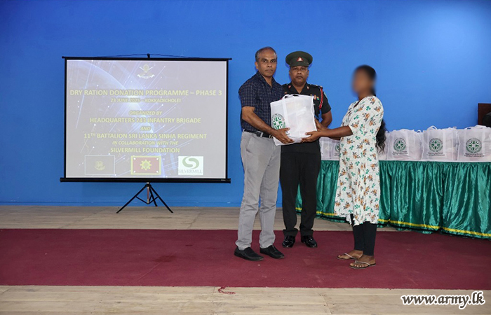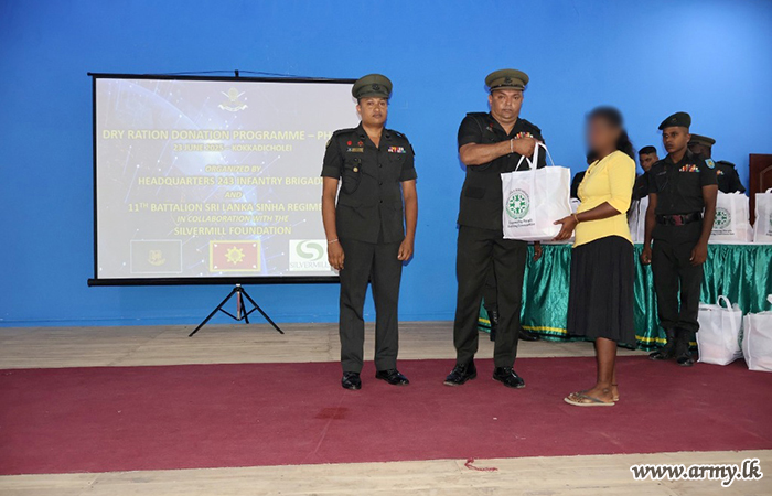 11 (ස්වෙච්ඡා) බලඇණිය ශ්රී ලංකා සිංහ රෙජිමේන්තුව වෙතින් 2025 ජුනි මස 23 දින කොක්කඩිචෝලෙයි ප්රදේශයේ අඩු ආදායම්ලාභී පවුල්වල ගර්භනී මව්වරුන් වෙනුවෙන් වියළි ආහාර සලාක පාර්සල් පරිත්යාග කිරීමේ සහ දිවා භෝජන සංග්රහයක් පිරිනැමීමේ වැඩසටහනක් ක්රියාත්මක කරන ලදී. මෙම අවස්ථාව සඳහා ප්රධාන ආරාධිත අමුත්තා ලෙස 243 පාබල බලසේනාවේ බලසේනාධිපති සහභාගි විය.