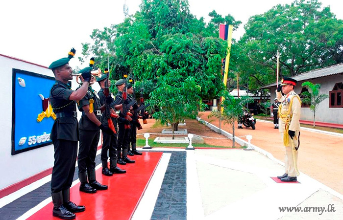 සේනාංක මූලස්ථානය වෙත පැමිණි නව සේනාංකාධිපතිව බලසේනාධිපතිවරුන් සහ මාණ්ඩලික නිලධාරින් විසින් පිළිගනු ලැබූ අතර, පසුව 6 බලඇණිය ශ්රී ලංකා සිංහ රෙජිමේන්තුවේ භටපිරිස් විසින් සේනාංකාධිපති වෙත හමුදා සම්ප්රදායානුකූල කඳවුරු මුරයේ සහ සම්මාන මුරයේ ගෞරවාචාරය පිරිනමන ලදී.