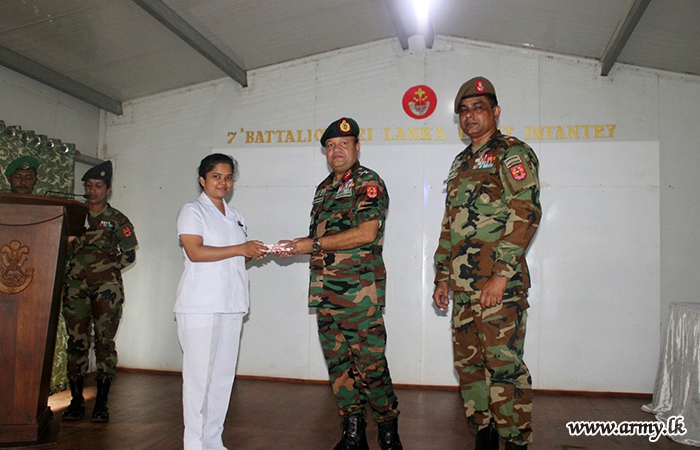 ප්රදේශයේ ගැබිනි මව්වරුන්ගේ පෝෂණ හා අත්යවශ්ය අවශ්යතා සපුරාලීම අරමුණින් 2026 පෙබරවාරි මස 20 වන දින 7 වන බලඇණි ශ්රී ලංකා පාබල හමුදා දේශන ශාලාවේදී පවත්වනු ලැබූ මෙම වැඩසටහනේදී එම ගැබිනි මව්වරුන් සඳහා වෛද්ය සායනයක් ද පවත්වන ලදී.