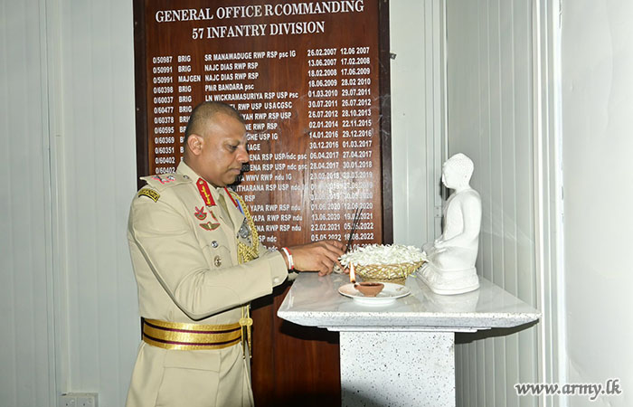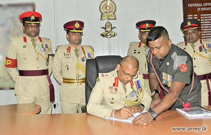 ඉන් පසුව, නව සේනාංකාධිපති 57 පාබල සේනාංකයේ සියලුම නිලයන් අමතමින් තම ඉදිරි දැක්ම ප්රකාශ කළේය. උත්සවයේ කටයුතු අවසන් කරමින් නව සේනාංකාධිපති සියලු තේ පැන් සංග්රහයක් සඳහාද සහභාගි විය.