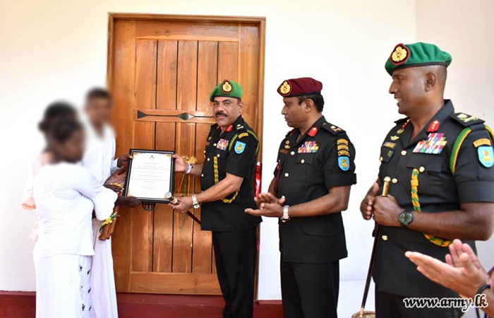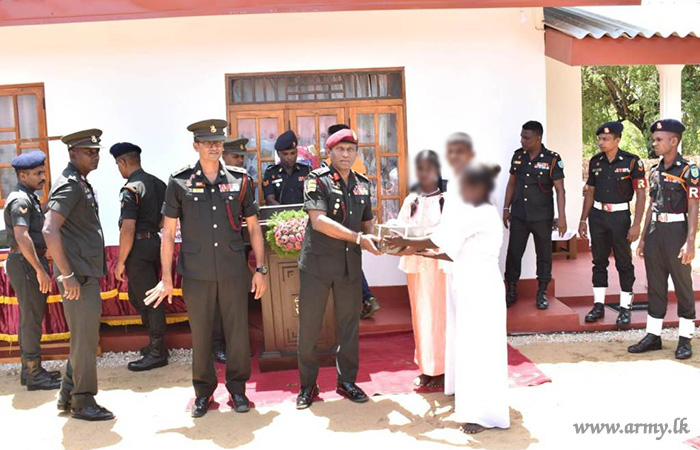 9 බලඇණිය විජයබාහු පාබල රෙජිමේන්තුවේ මූලිකත්වයෙන් සිරිමංගලපුර ප්රදේශයේ නිවාස අවශ්යතා සහිත පවුලක් වෙනුවෙන් ඉදිකරනු ලැබූ නව නිවස 2025 ජූලි මස 04 දින එම ප්රතිලාභී පවුලේ සාමාජිකයන් වෙත නිල වශයෙන් පවරාදෙනු ලැබීය.
