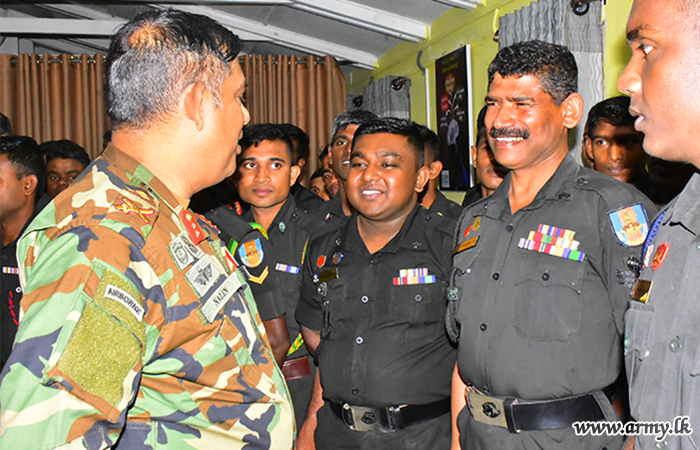 පිරිස ඇමතීමෙන් පසුව, ආරක්ෂක සේනා ආඥාපති - මධ්යම විසින් සියලු නිල තේ පැන් සංග්රහයකට සහභාගී වූ අතර, එහිදී එම ජ්යෙෂ්ඨ නිලධාරි භටපිරිස් සමඟින් සුහද කතාබහක නිරත විය. මෙම අවස්ථාවට ජ්යෙෂ්ඨ නිලධාරින්, නිලධාරින් සහ සෙසුනිලයන් සහභාගී වූහ.