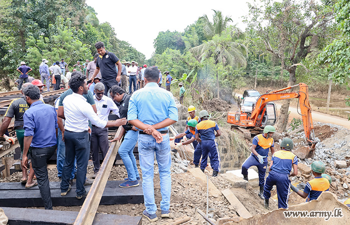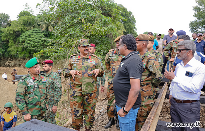 අනතුරුව, යුද්ධ හමුදාධිපතිතුමන් ගංවතුරෙන් හානියට පත් බුජ්ජෝමුව දුම්රිය ස්ථානය අසල ඇති බුජ්ජෝමුව පාලමේ යුද්ධ හමුදා සාමාජිකයන් විසින් තාවකාලිකව ඉදිකරන ලද තනි මංතීරු මාර්ගය සහ එම පාලමේ සිදුකරනු ලබන ප්රතිසංස්කරණ කටයුතු නිරීක්ෂණය කිරීම සඳහා එම ප්රදේශයේ සංචාරයක නිරත විය.