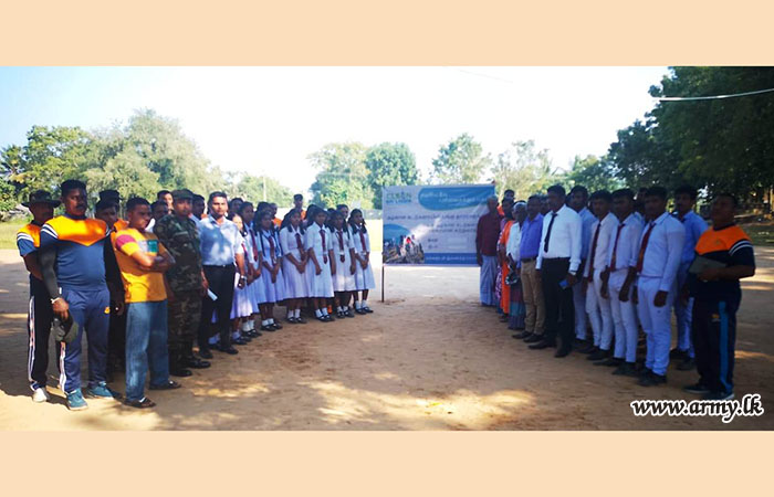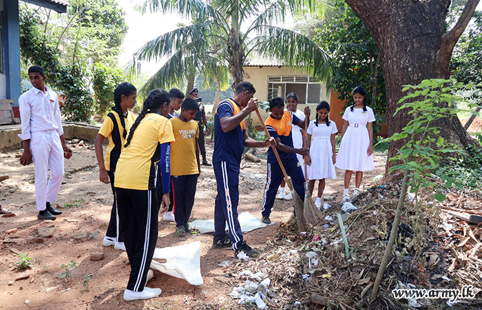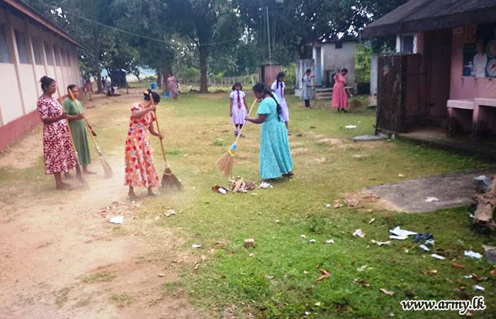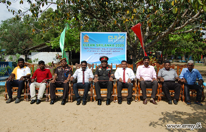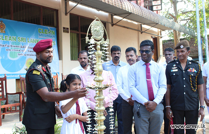 ‘ක්ලීන් ශ්රී ලංකා’ වැඩසටහනට සමගාමීව යුද්ධ හමුදාධිපතිතුමන්ගේ මඟපෙන්වීම සහ ආරක්ෂක සේනා ආඥාපති - නැගෙනහිර මේජර් ජෙනරල් පී. ආර් පතිරවිතාන USAWC psc ගේ අධීක්ෂණය මත එම ආරක්ෂක සේනා මූලස්ථානය යටතේ සේවයේ නියුතු භටපිරිස් විසින් 2025 පෙබරවාරි මස 20 දින පාසල් පිරිසිදු කිරීමේ සහ ප්රතිසංස්කරණය කිරීමේ වැඩසටහනක් ක්රියාත්මක කරන ලදී.