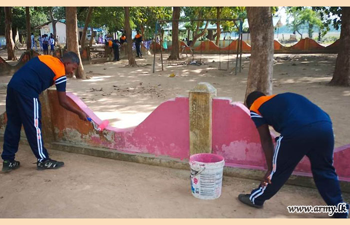 ඒ අනුව, භටපිරිස් විසින් මාවනාගම විද්යාලය, බඹරවාන විද්යාලය, පසුප්රදේශ්වරම් විද්යාලය, අසේලපුර කැප්පෙටිපොළ විද්යාලය සහ ලීලාරත්න විජේරත්න මධ්ය මහා විද්යාලය යන පාසල් පිරිසිදු කර ප්රතිසංස්කරණ කටයුතු ද සිදුකරන ලදී.