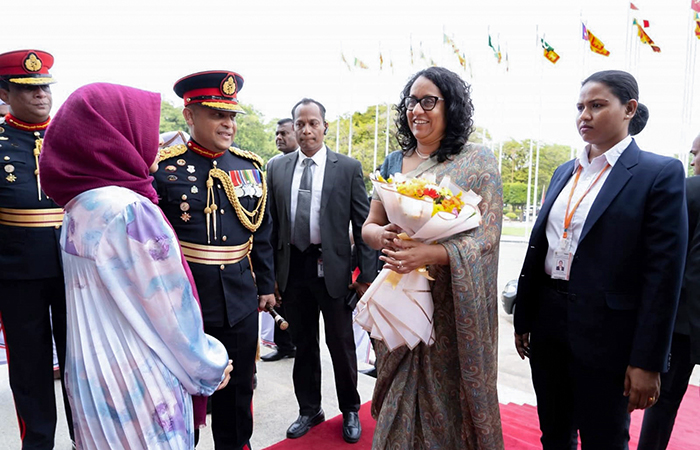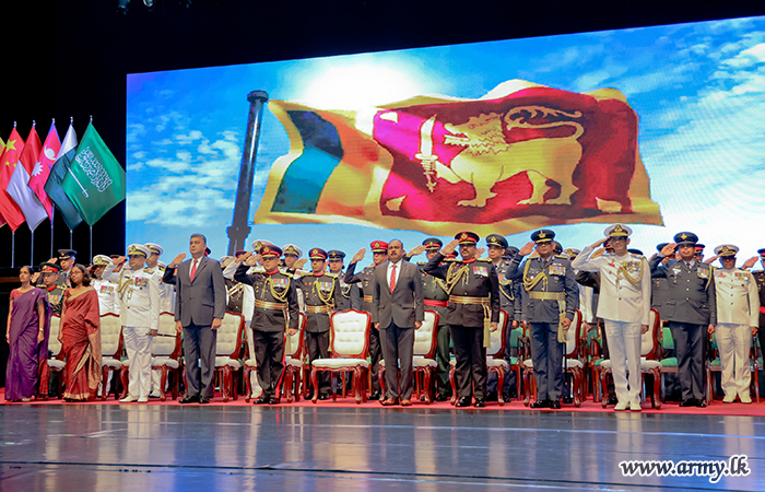 ප්රධාන දොරටුව වෙත සපැමිණි ගරු අග්රාමාත්යතුමියව ආරක්ෂක ලේකම්තුමන් ඇතුළු යුද්ධ හමුදාධිපතිතුමන්, නාවික හමුදාධිපතිතුමන්, ගුවන් හමුදාධිපතිතුමන් සහ ආරක්ෂක සේවා අණ හා මාණ්ඩලික විද්යාලයේ සේනාවිධායක ඇතුළු පිරිස විසින් පිළිගැනීමෙන් අනතුරුව එතුමියව ශ්රවණාගාරය වෙත කැටුව ඒමෙන් පසුව උත්සවයේ කටයුතු ආරම්භ විය.