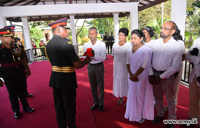 පසුව, යුද්ධ හමුදා විධායක ජෙනරාල් මේජර් ජෙනරල් කේ.ටී.පී ද සිල්වා RSP ndu psc විසින් අභාවප්රාප්ත බ්රිගේඩියර් ඒ.පී.ඩී එදිරිසූරිය (විශ්රාමික) KSV සිය කීර්තිමත් යුද්ධ හමුදා දිවිය තුළ හිමිකරගත් පදක්කම් එතුමන්ගේ පවුලේ සාමාජිකයින් වෙත පිළිගන්වන ලදී.