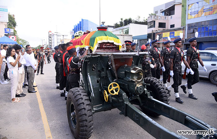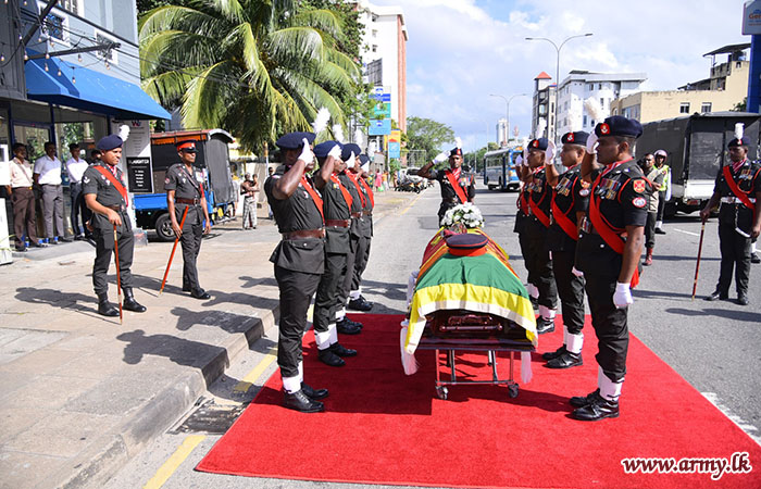යුද්ධ හමුදා විධායක ජෙනරාල් විසින් නිකුත් කරන ලද විශේෂ නියෝග I, අවමංගල්ය උත්සව අවස්ථාවේදී පැමිණි පිරිස ඉදිරියේ ප්රකාශ කරමින් අභාවප්රාප්ත ජ්යෙෂ්ඨ නිලධාරිගේ සේවය ගෙනහැර දක්වමින් ඔහුගේ කැපවූ සේවයට ජාතියේ කෘතඥතාව පළ කරන ලදී. පසුව, ජ්යෙෂ්ඨ නිලධාරියෙකු වෙත ලැබිය හැකි ඉහළම ගෞරව උපහාරය ලබාදෙමින් සංකේතාත්මක කාලතුවක්කු වෙඩි මුර ආචාරය පවත්වන ලදී.