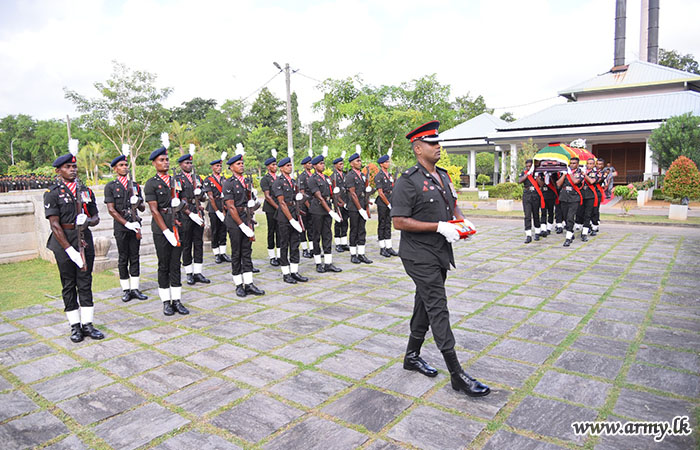 හිරු නැගෙන මොහොතේදිත් හිරු බැස යන මොහොතේදිත් වැයෙන යුද්ධ හමුදා බියුගල් නලා හඬ එම අවස්ථාවේදි වාදනය කරනු ලැබු අතර, පසුව අභාවප්රාප්ත බ්රිගේඩියර් ඒ.පී.ඩී එදිරිසූරිය (විශ්රාමික) KSV ගේ දේහය හමුදා සම්ප්රදායානුකූලව ආදාහනාගාරය වෙත රැගෙන යන ලදී.