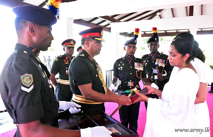 පසුව, ශ්රී ලංකා විදුලි හා යාන්ත්රික ඉංජිනේරු බලකායේ බලකාධිපති සහ විදුලි හා යාන්ත්රික ඉංජිනේරු අධ්යක්ෂ ජෙනරාල් මේජර් ජෙනරල් සී. කළුතරආරච්චි විසින් අභාවප්රාප්ත මේජර් ජෙනරල් ටී.ඒ පීරිස් (විශ්රාමික) ptsc සිය කීර්තිමත් යුද්ධ හමුදා දිවිය තුළ හිමිකරගත් පදක්කම් එතුමන්ගේ පවුලේ සාමාජිකයින් වෙත පිළිගන්වන ලදී.
