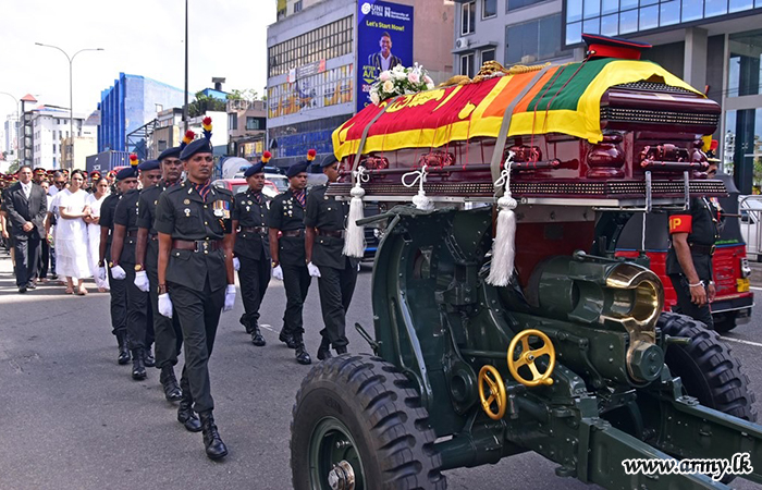 යුද්ධ හමුදා විධායක ජෙනරාල් විසින් නිකුත් කරන ලද විශේෂ නියෝග I, අවමංගල්ය උත්සව අවස්ථාවේදී පැමිණි පිරිස ඉදිරියේ ප්රකාශ කරමින් අභාවප්රාප්ත ජ්යෙෂ්ඨ නිලධාරිගේ සේවය ගෙනහැර දක්වමින් ඔහුගේ කැපවූ සේවයට ජාතියේ කෘතඥතාව පළ කරන ලදී. පසුව, ජෙනරල්වරයෙකුට ලැබිය හැකි ඉහළම ගෞරව උපහාරය ලබාදෙමින් සංකේතාත්මක කාලතුවක්කු වෙඩි මුර ආචාරය පවත්වන ලදී.