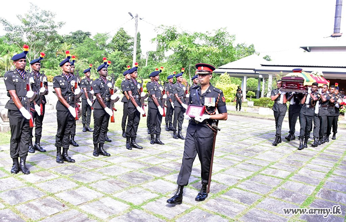 හිරු නැගෙන මොහොතේදිත් හිරු බැස යන මොහොතේදිත් වැයෙන යුද්ධ හමුදා බියුගල් නලා හඬ එම අවස්ථාවේදි වාදනය කරනු ලැබු අතර, පසුව අභාවප්රාප්ත මේජර් ජෙනරල් ටී.ඒ පීරිස් (විශ්රාමික) ptsc ගේ දේහය හමුදා සම්ප්රදායානුකූලව ආදාහනාගාරය වෙත රැගෙන යන ලදී.