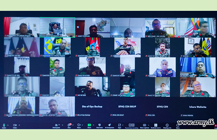 පවතින අයහපත් කාලගුණික තත්ත්වය හමුවේ යුද්ධ හමුදා භටපිරිස් විසින් සිදුකරනු ලබන සහන සේවා මෙහෙයුම් කටයුතු වල ප්‍රගතිය සොයා බැලීම සඳහා යුද්ධ හමුදාධිපති ලුතිනන් ජෙනරල් ලසන්ත රොද්‍රිගෝ RSP ctf-ndu psc IG, 2025 නොවැම්බර් මස 30 දින සවස යුද්ධ හමුදා මූලස්ථානයේදී ක්ෂේත්‍ර අණදෙන නිලධාරින් සමඟින් මාර්ගගත ක්‍රමය ඔස්සේ සාකච්ඡාවක් පවත්වනු ලැබීය. එහිදී එතුමන් ආපදා සහන සේවා මෙහෙයුම් අඛණ්ඩව සහ විධිමත්ම සිදුකිරීමට අවශ්‍ය උපදෙස් ලබාදුන්නේය.