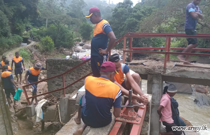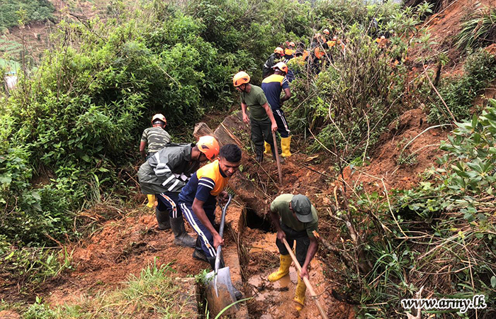 ඒ අනුව, 2025 නොවැම්බර් මස 29 දින සිට දෙසැම්බර් 3 දින දක්වා කාලය තුළ ඉංජිනේරු බලකායේ භටපිරිස් විසින් නායයෑම් ස්ථානවල සුන්බුන් ඉවත් කිරීම, හානියට පත් මාර්ග අලුත්වැඩියා කිරීම සහ බලපෑමට ලක් වූ ප්රදේශවල ආපදාවන්ට ලක් වූ ප්රජාවන්ට සහය වීම සිදුකරන ලදී.