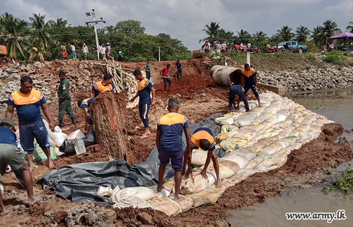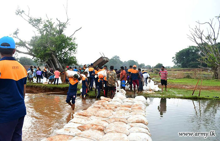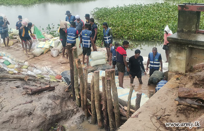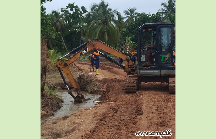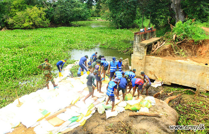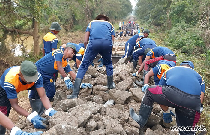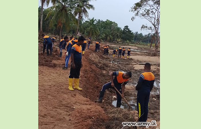 11 වන පාබල සේනාංකය යටතේ ස්ථාපිත 1 වන බලඇණිය ගැමුණු හේවා බළකායේ භටපිරිස් විසින් කන්දේ ඇල ප්රදේශයේ හානියට පත් ඇළ මාර්ග අලුත්වැඩියා කිරීම සඳහා වාරිමාර්ග දෙපාර්තමේන්තුවට සහාය ලබාදෙන ලදී. තවද, වෙල්කැටිය අමුණ ගම්මානයේ පොතව අමුණ අලුත්වැඩියා කිරීම සඳහා 2 වන ශ්රී ලංකා රයිෆල් බළකායේ භටපිරිස් ද සිය සහාය ලබාදෙනු ලැබීය.